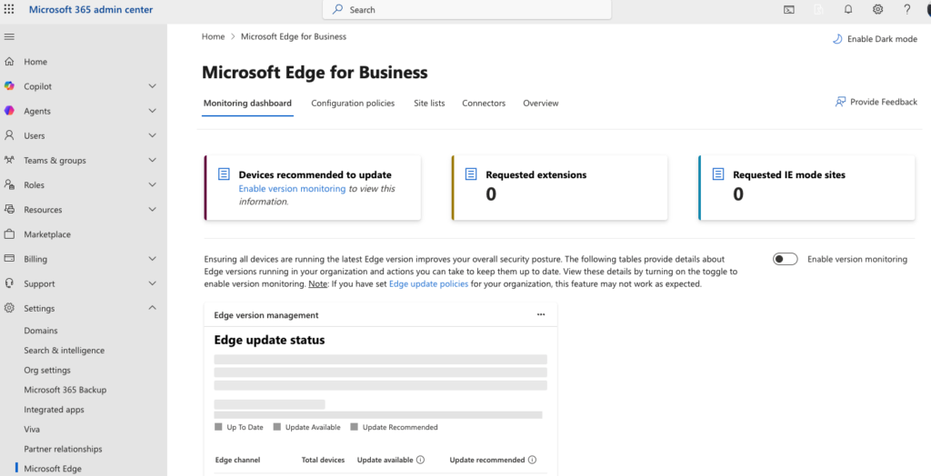 Where is it configured: >M365 Admin Centre (admin.microsoft.com) → Settings → Microsoft Edge